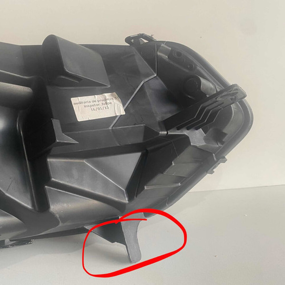 - Caso a peça tenha algum detalhe que afete o funcionamento ou estética, será destacado nas imagens com um círculo vermelho.