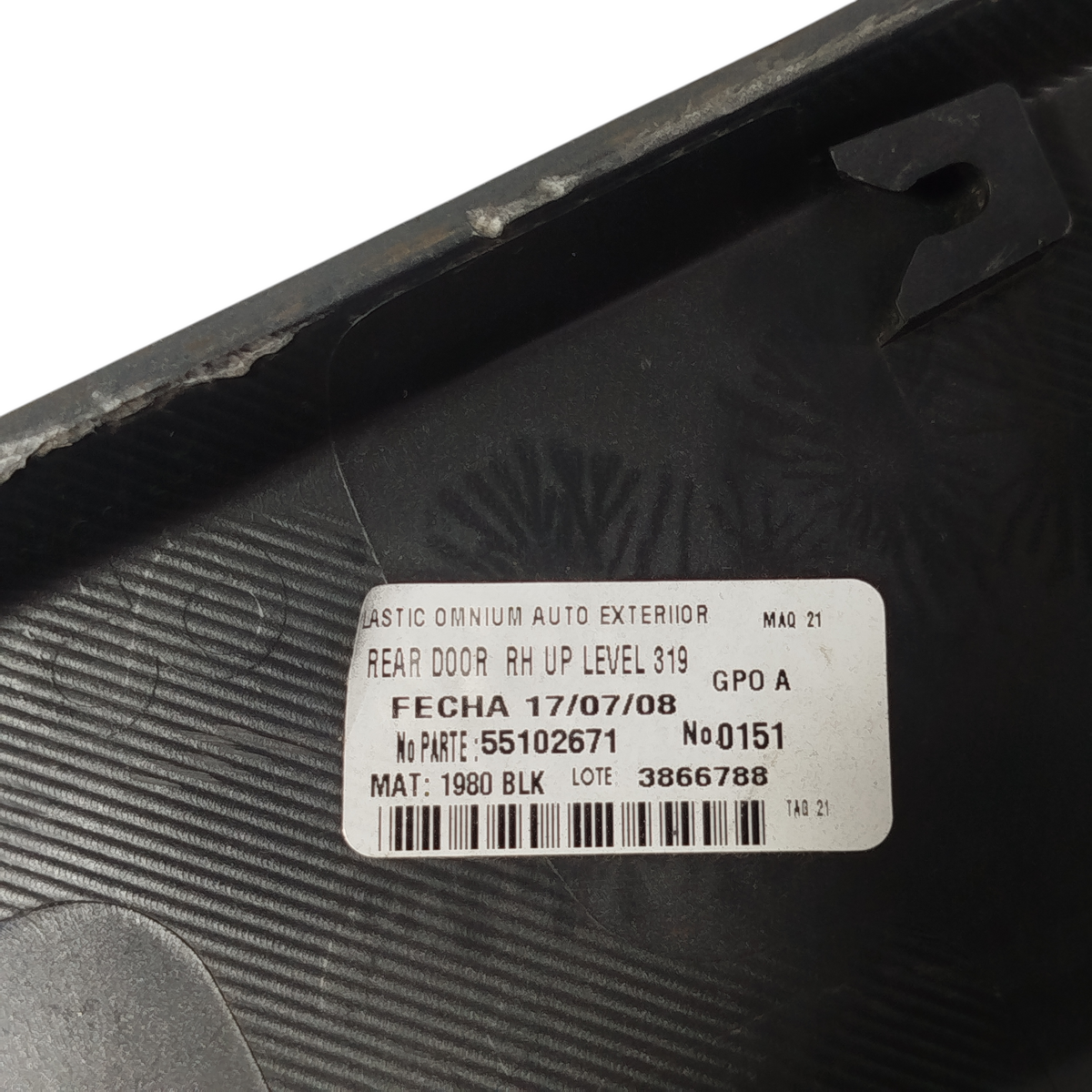 | Número de peça | 2008 A 2017 |