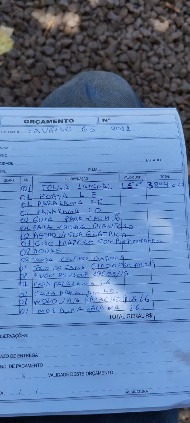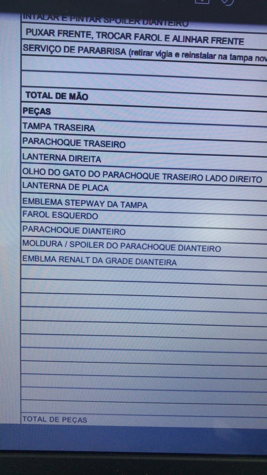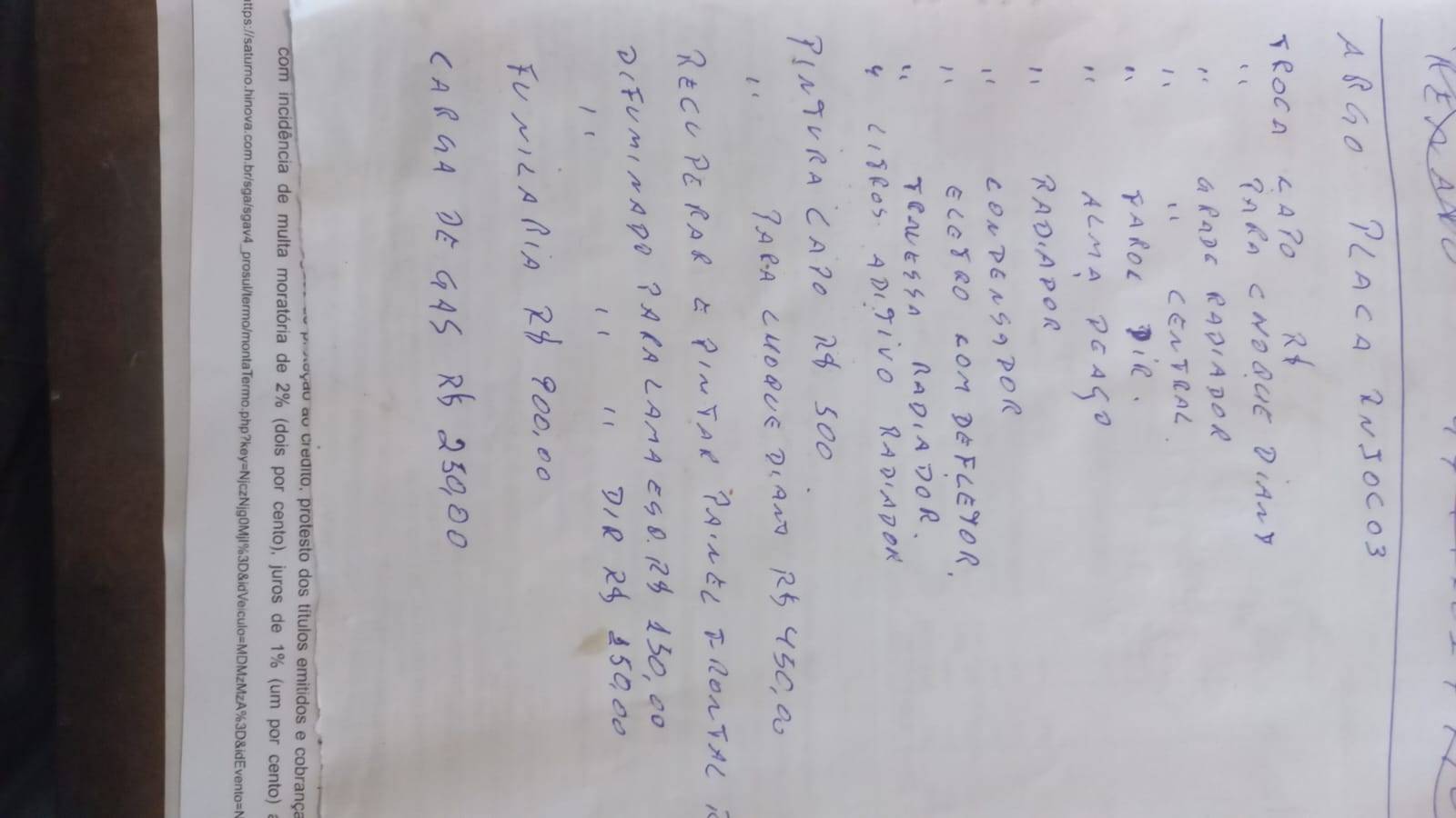 | Tipo de veículo | Carro/Caminhonete |
