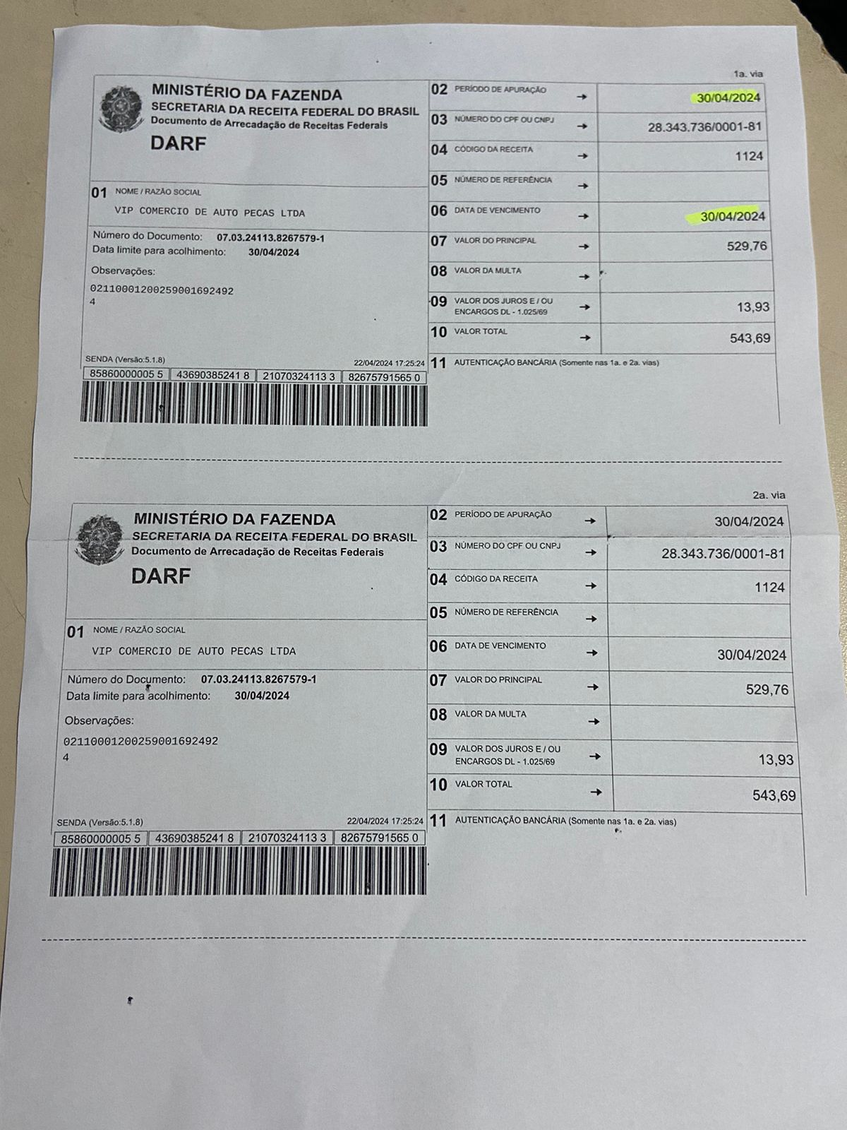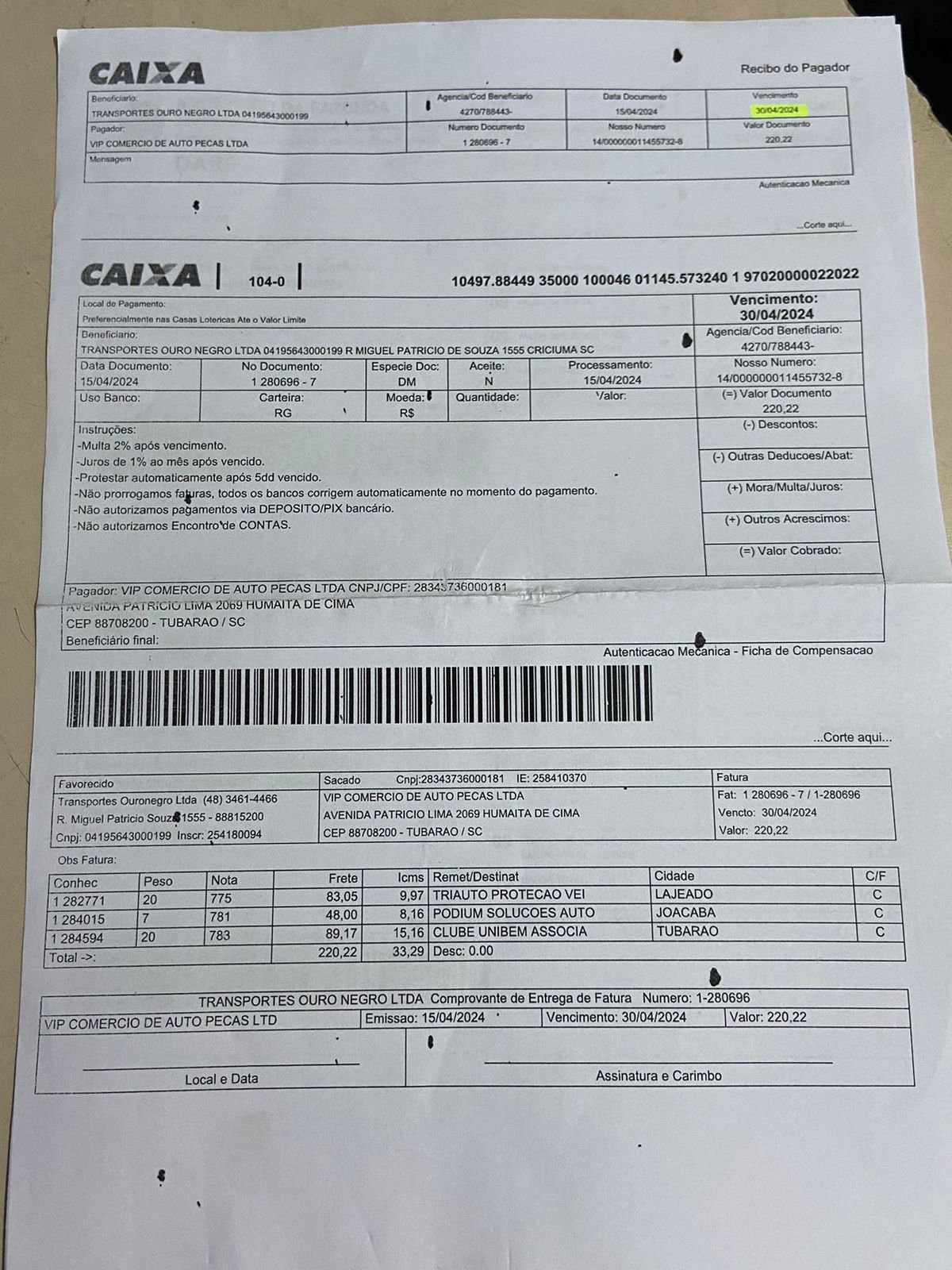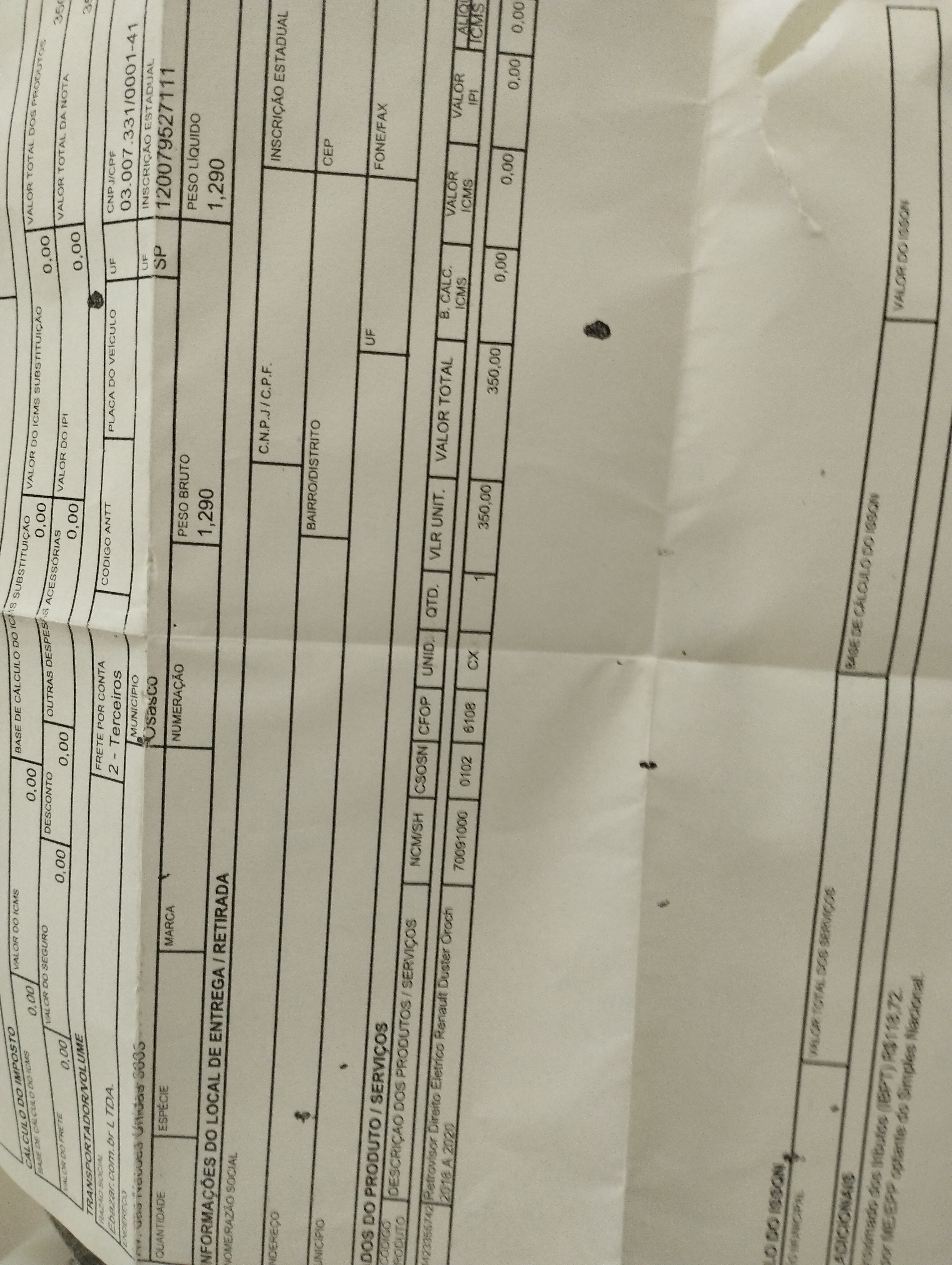 Acompanha nota fiscal