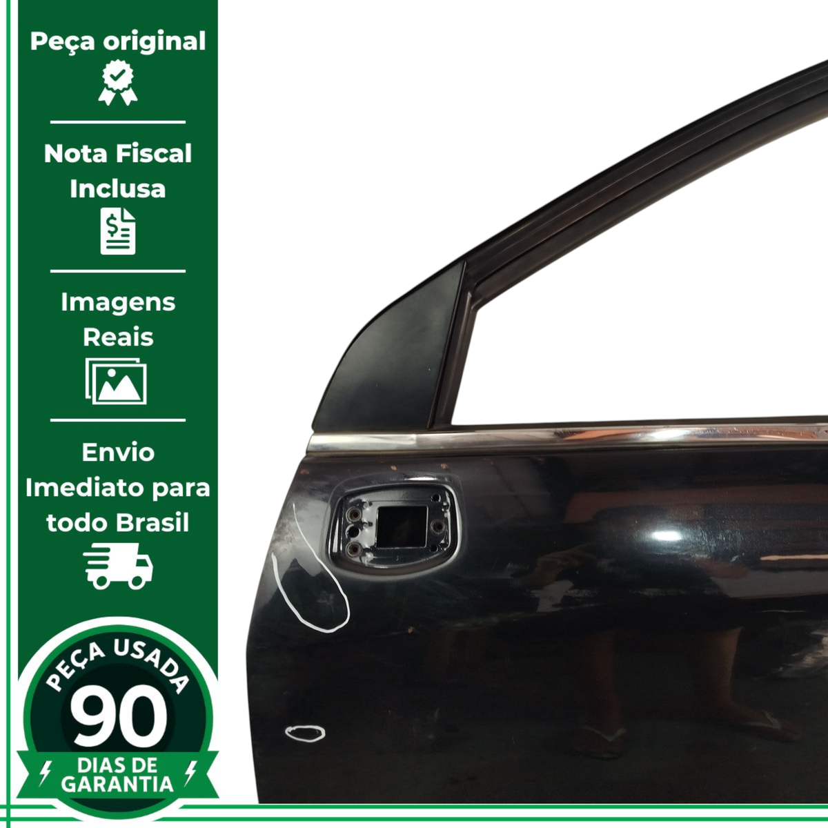 acabamentos interno, moldura externa, Máquinas de vidro, Vidros, Fechaduras, Miolo de chave, Dobradiças, Alto-falante, Chicote elétrico, Botões e comandos (vidro, trava, retrovisor), Borrachas, guarnições, canaletas, Maçaneta externa e interna