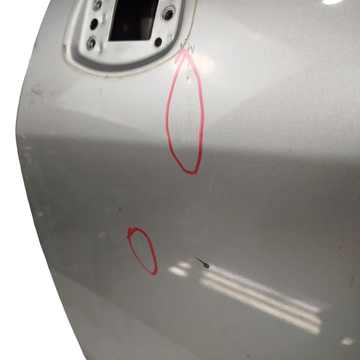 - Caso a peça tenha algum detalhe que afete o funcionamento ou estética, será destacado nas imagens com um círculo vermelho.