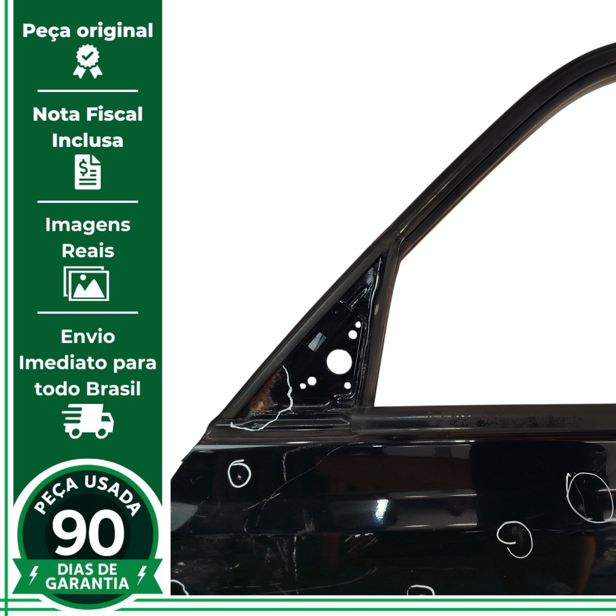 acabamentos interno, moldura externa, Máquinas de vidro, Vidros, Fechaduras, Miolo de chave, Dobradiças, Alto-falante, Chicote elétrico, Botões e comandos (vidro, trava, retrovisor), Borrachas, guarnições, canaletas, Maçaneta externa e interna