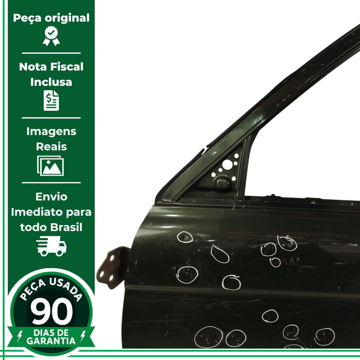 - Caso a peça tenha algum detalhe que afete o funcionamento ou estética, será destacado nas imagens com um círculo vermelho.