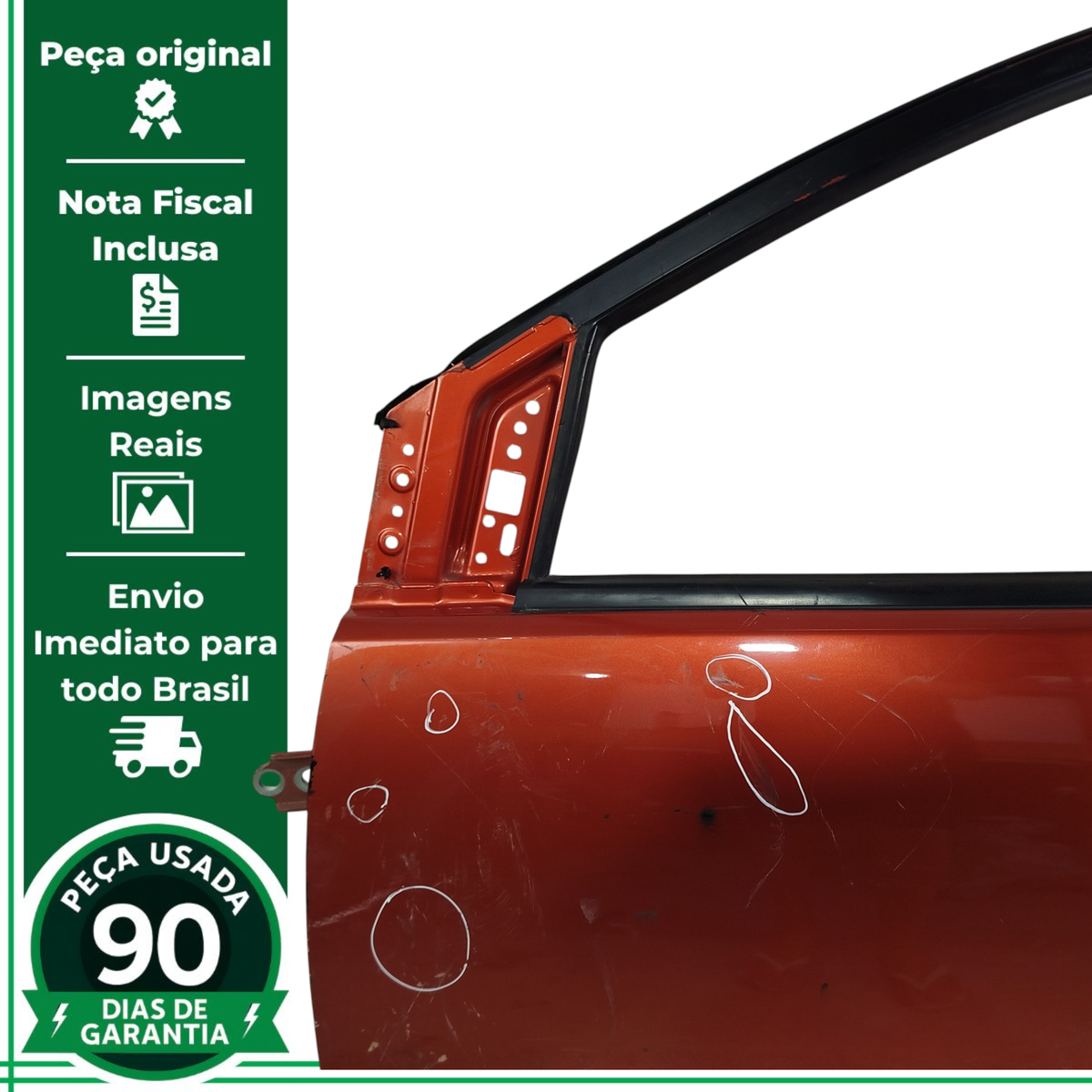 - Caso a peça tenha algum detalhe que afete o funcionamento ou estética, será destacado nas imagens com um círculo vermelho.