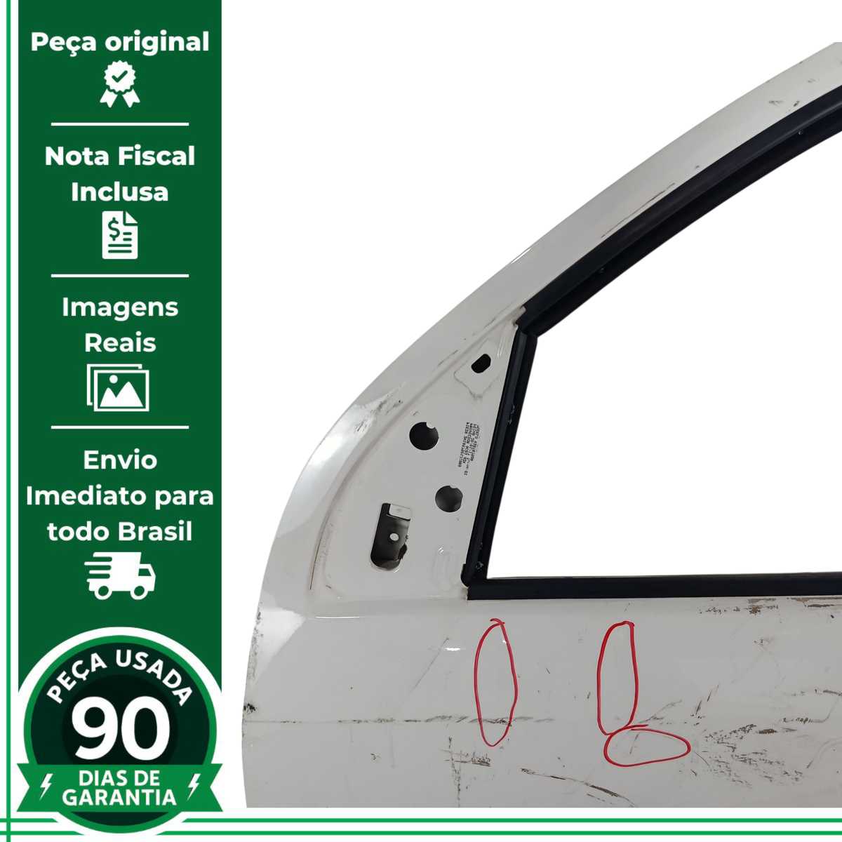 - Caso a peça tenha algum detalhe que afete o funcionamento ou estética, será destacado nas imagens com um círculo vermelho.