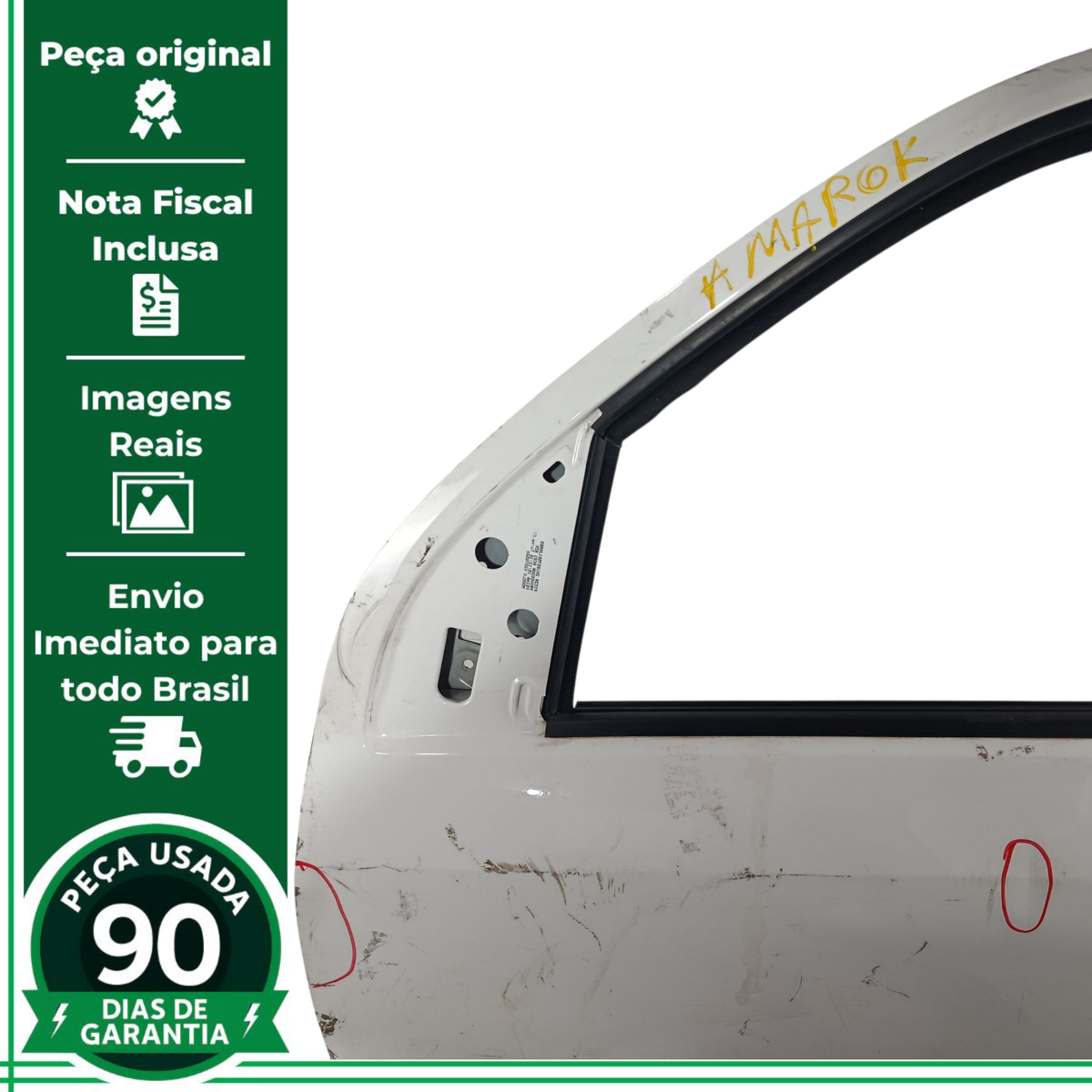 - Caso a peça tenha algum detalhe que afete o funcionamento ou estética, será destacado nas imagens com um círculo vermelho.