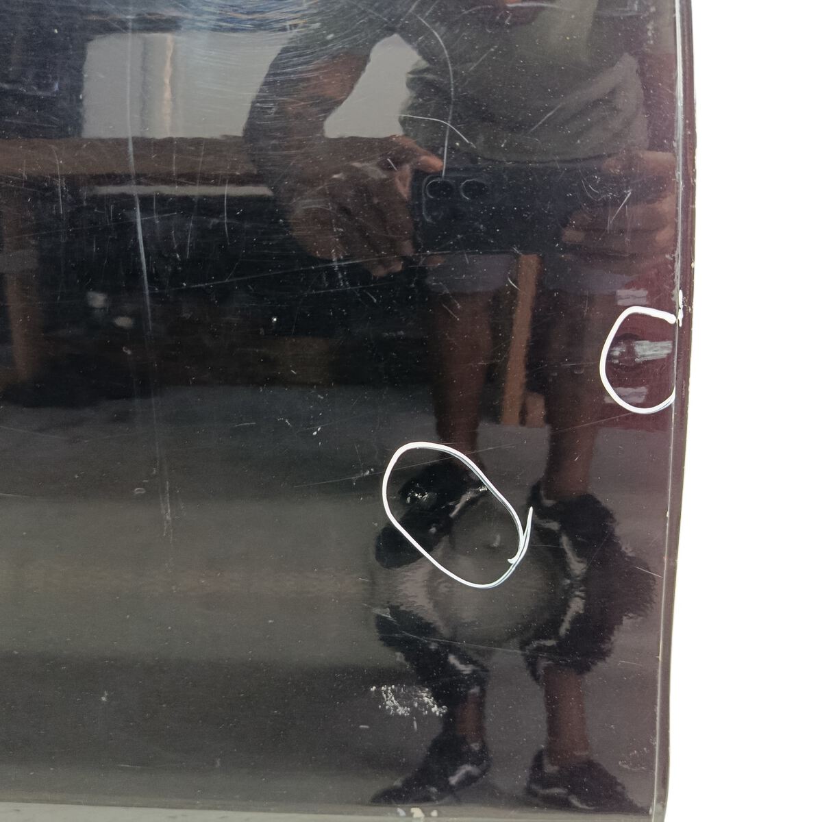 - Caso a peça tenha algum detalhe que afete o funcionamento ou estética, será destacado nas imagens com um círculo vermelho.