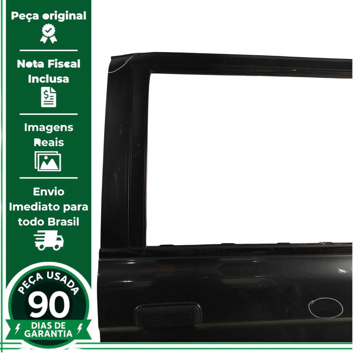 acabamentos interno, moldura externa, Máquinas de vidro, Vidros, Fechaduras, Miolo de chave, Dobradiças, Alto-falante, Chicote elétrico, Botões e comandos (vidro, trava, retrovisor), Borrachas, guarnições, canaletas, Maçaneta externa e interna