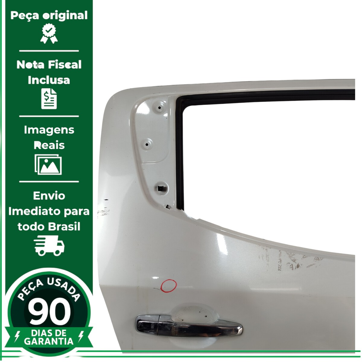 - Caso a peça tenha algum detalhe que afete o funcionamento ou estética, será destacado nas imagens com um círculo vermelho.