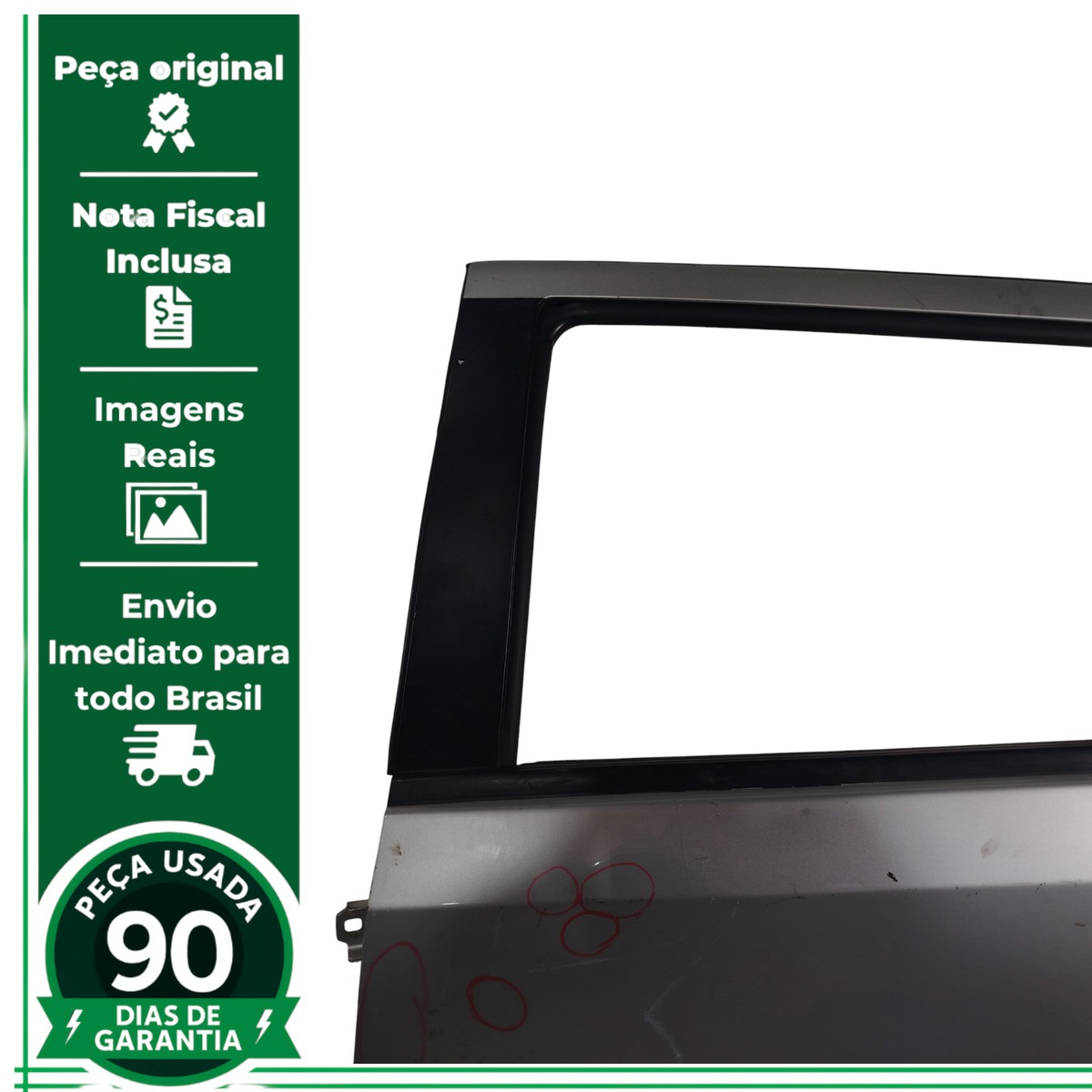 - Caso a peça tenha algum detalhe que afete o funcionamento ou estética, será destacado nas imagens com um círculo vermelho.