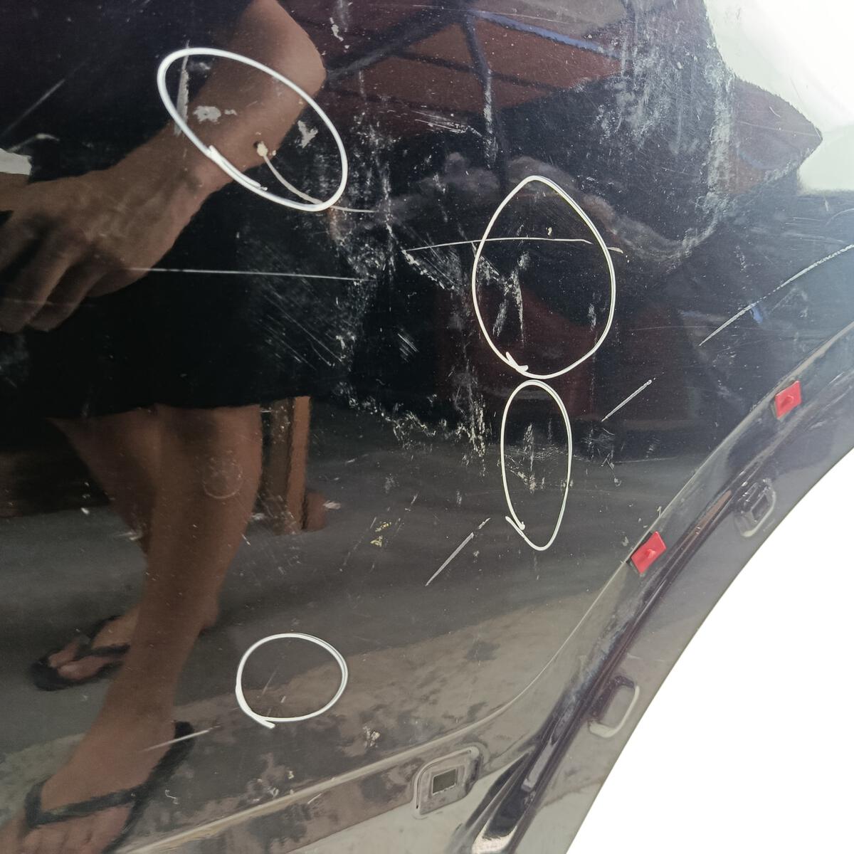 - Caso a peça tenha algum detalhe que afete o funcionamento ou estética, será destacado nas imagens com um círculo vermelho.