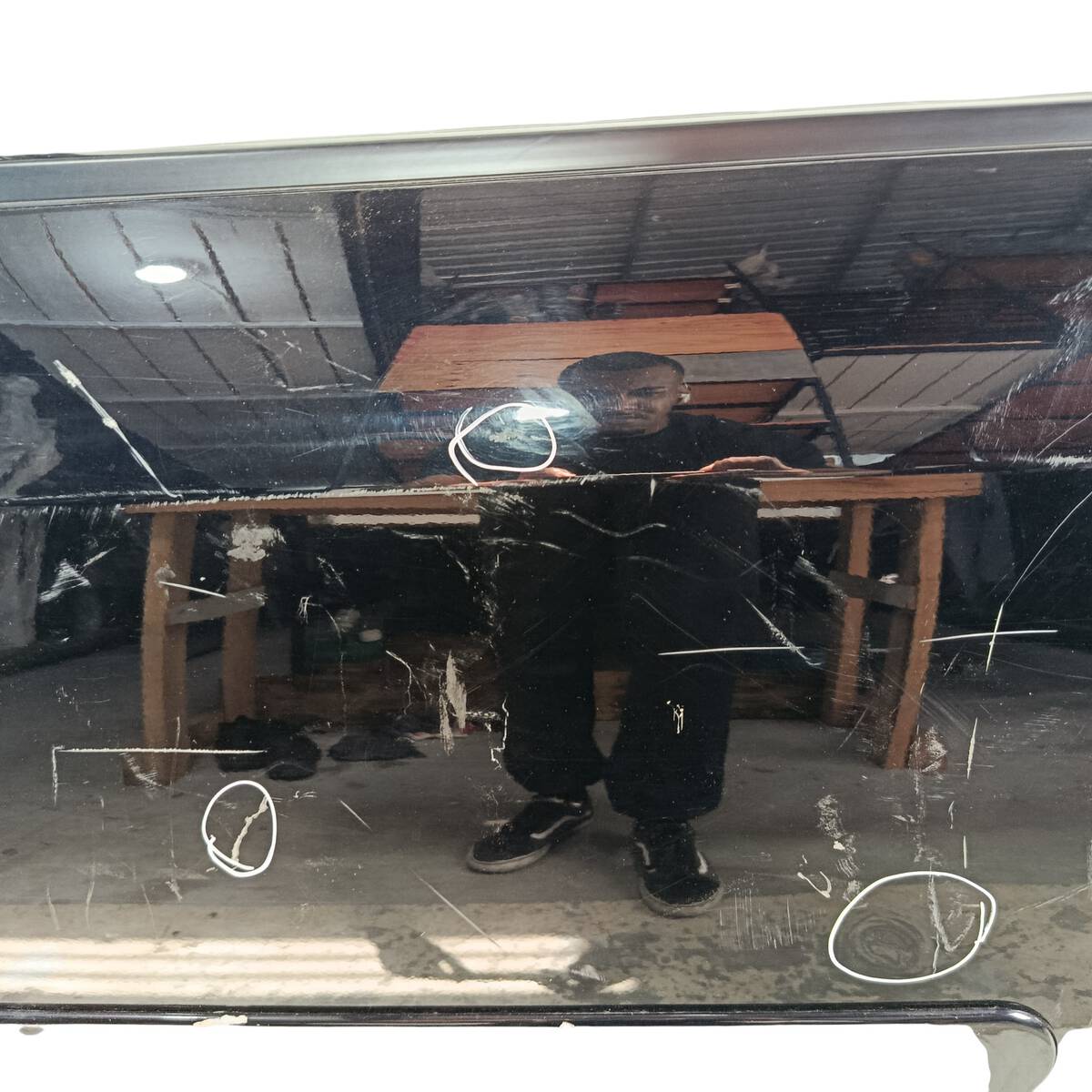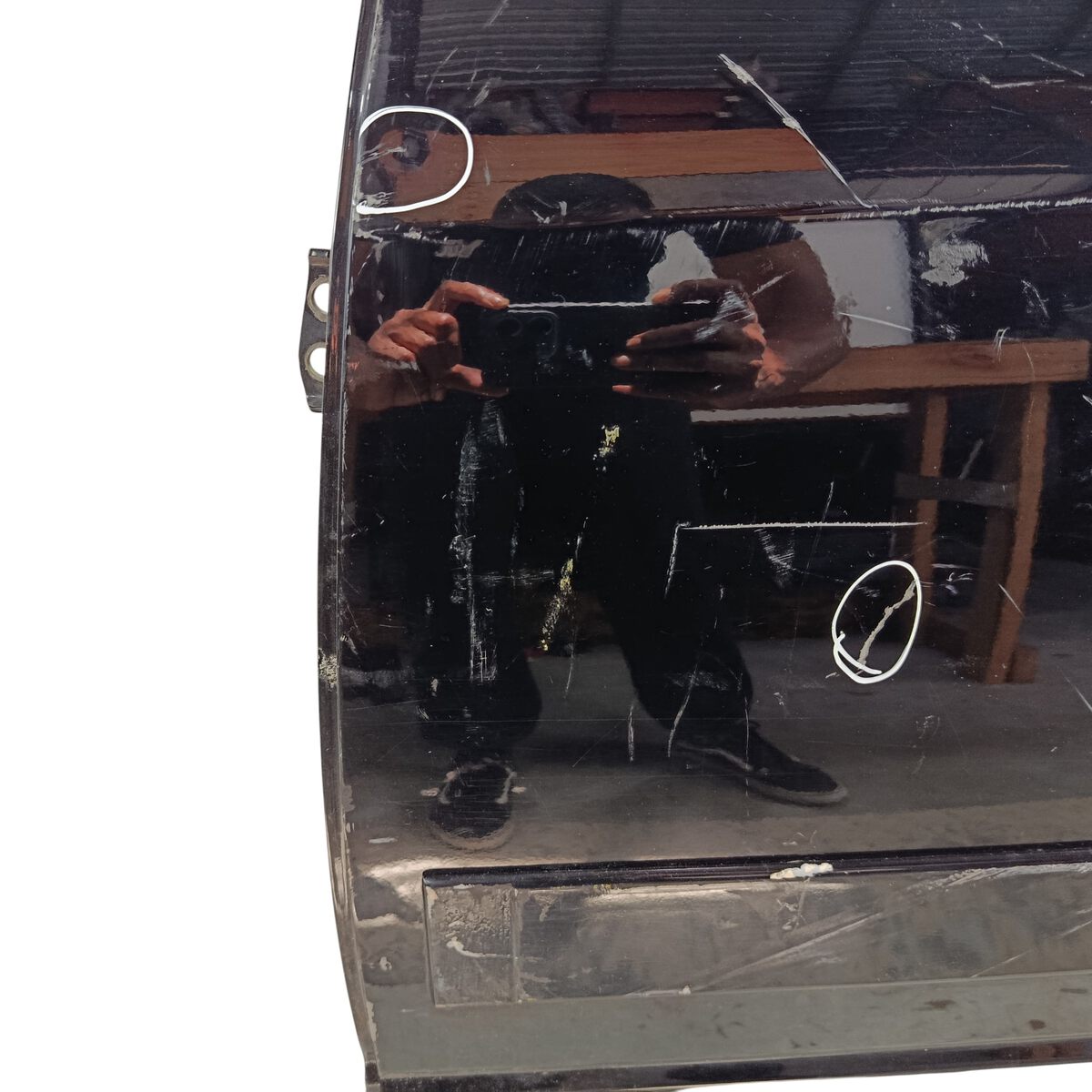 - Caso a peça tenha algum detalhe que afete o funcionamento ou estética, será destacado nas imagens com um círculo vermelho.