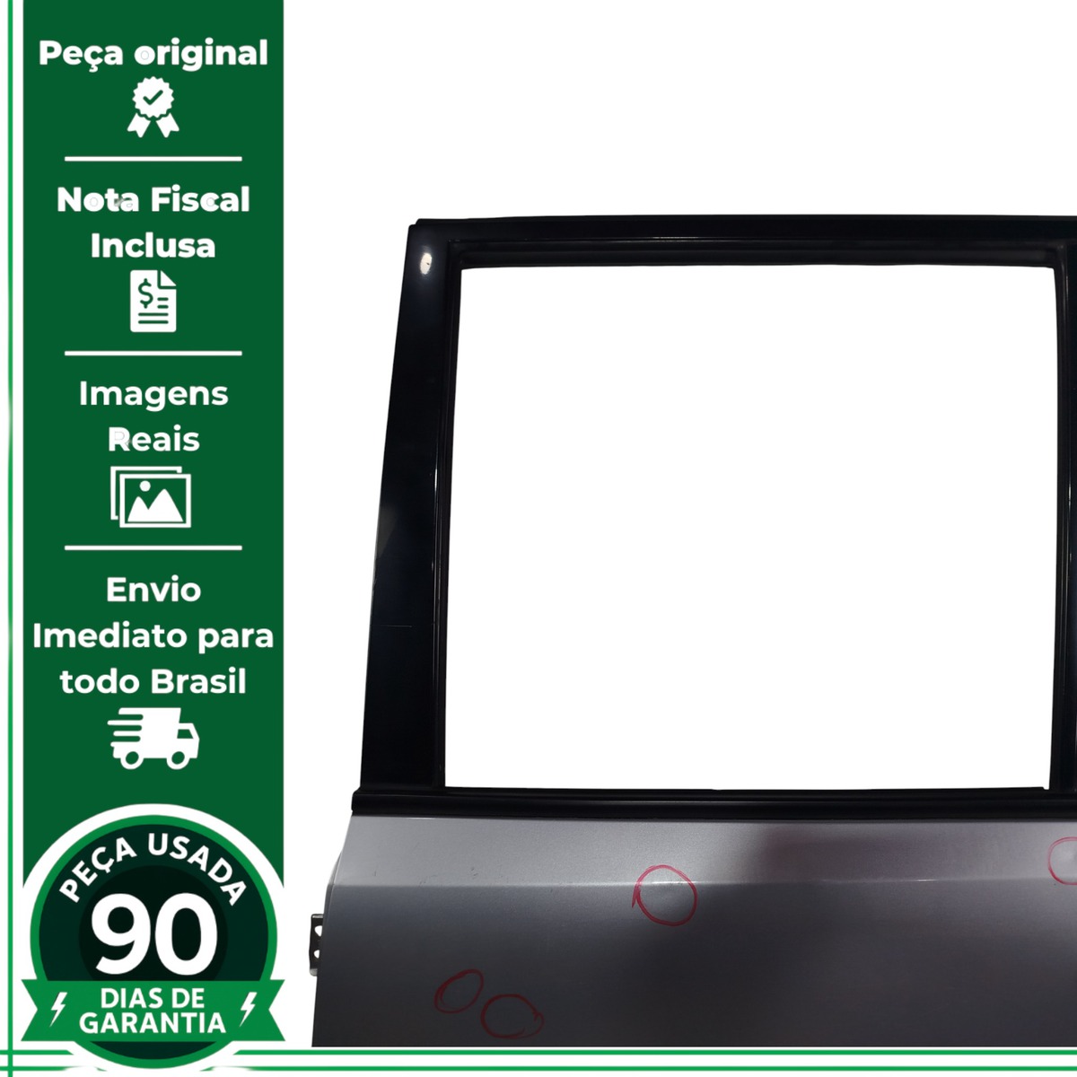 - Caso a peça tenha algum detalhe que afete o funcionamento ou estética, será destacado nas imagens com um círculo vermelho.